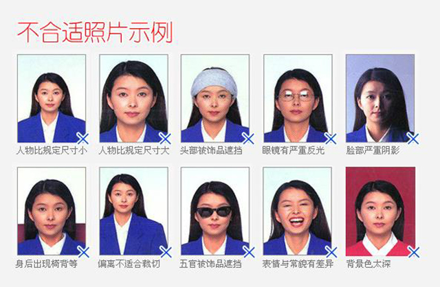 8、不能有未露出耳朵等其他难以辨别是本人的情形。